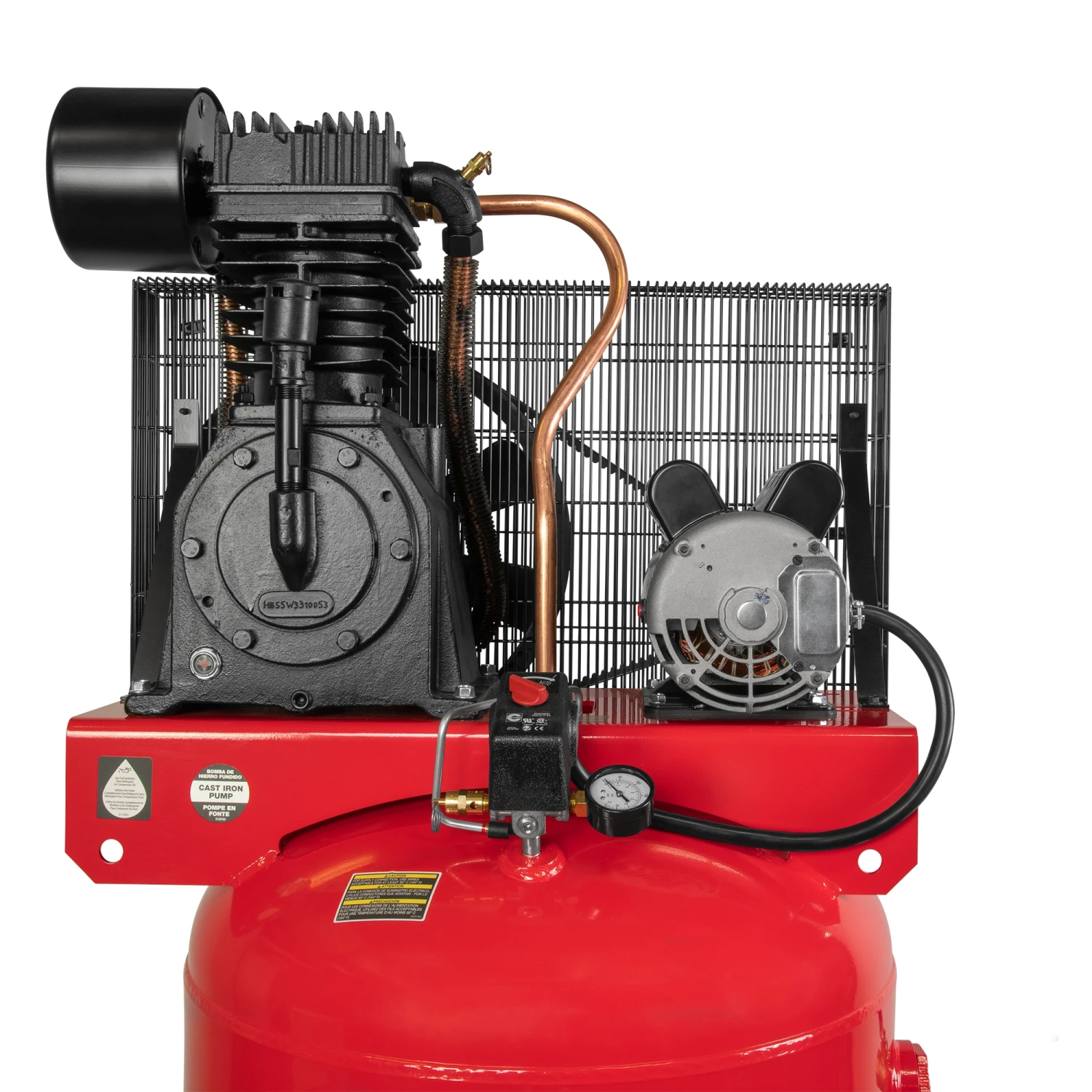 The Craftsman 80 Gal. 2 stage air compressor uses a powerful 5 HP induction motor to deliver a steady 13.5 SCFM at 175 PSI. This Craftsman air compressor motor, designed with thermal overload protection, requires no magnetic starter. With a capacity for serious work, this machine has the endurance to keep pneumatic tools big and small running. This machine is ready for any job. Install this powerhouse into your work area, wire it up and get to work. This unit features a 208-230v electric motor. It should be connected to a power supply that is 230 Volt, 60 Hz, AC only. Please consult your local codes and a certified electrician before wiring this compressor for power. (This unit requires a 30 amp double pole breaker for proper installation.) This compressor does not include a power cord.