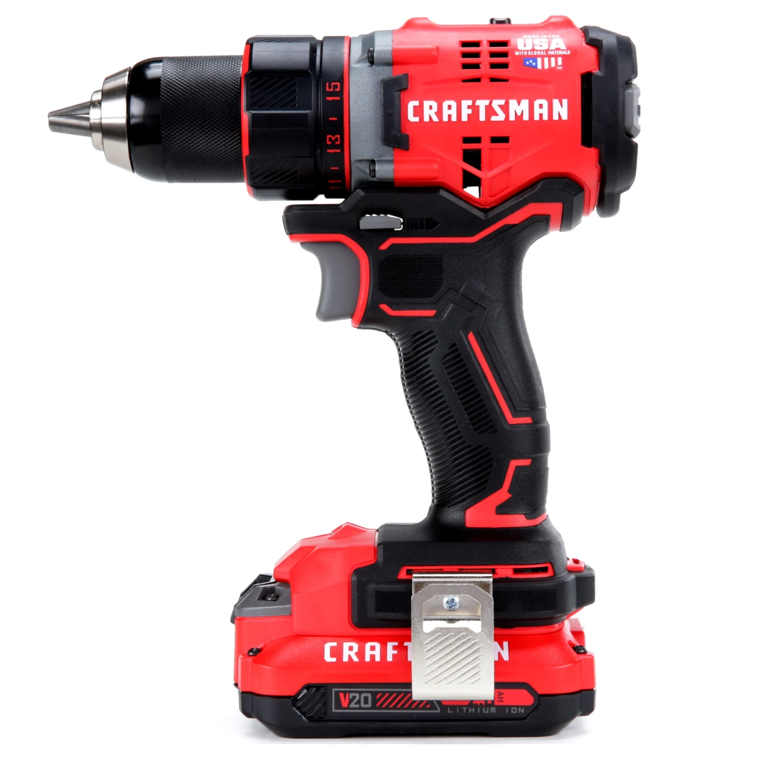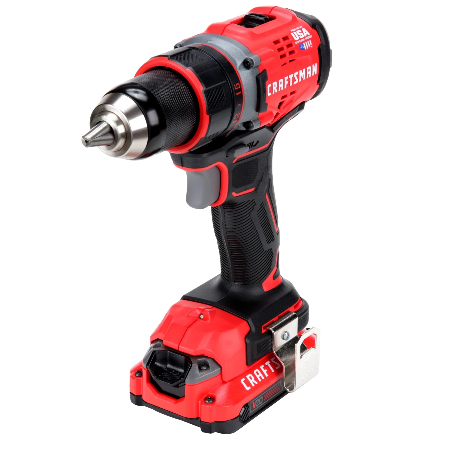 - Includes (1) CMCD720 Drill/Driver; (2) CMCB202 V20 20V MAX 2.0Ah Lithium Ion Battery; (1) V20 20V MAX Lithium Ion Charger; (1) Belt Clip; (1) Storage Bag