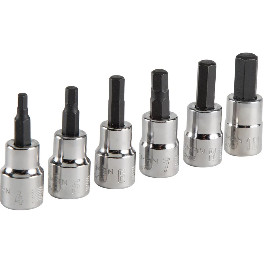 - Includes (6) 3/8-in Drive Hex Bit Sockets Metric (4mm, 5mm, 6mm, 7mm, 8mm, 10mm)