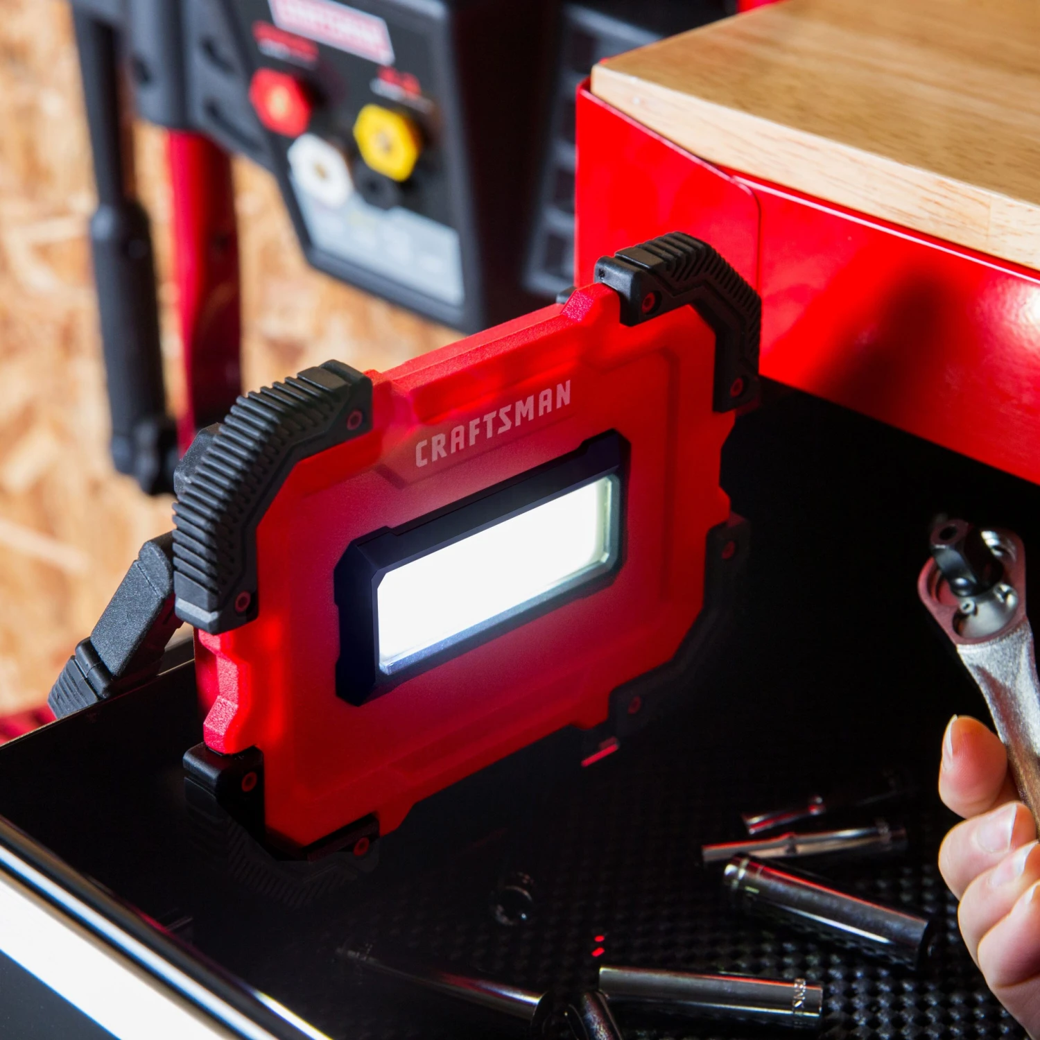 The CRAFTSMAN 500 lumen portable area light has a slim durable design that makes it perfect for work as well as both outdoor and indoor recreation activities. The light is equipped with 3 modes:high,low and flash. A simple push of a button is needed to switch modes. The light also contains a 180 degree rotating handle for easy mobility which also transforms into a stand for standalone usage. It is ideal for car maintenance,camping,exploring,fishing,and emergency situations. This portable light can be positioned to provide lighting in a wide variety of situations.
