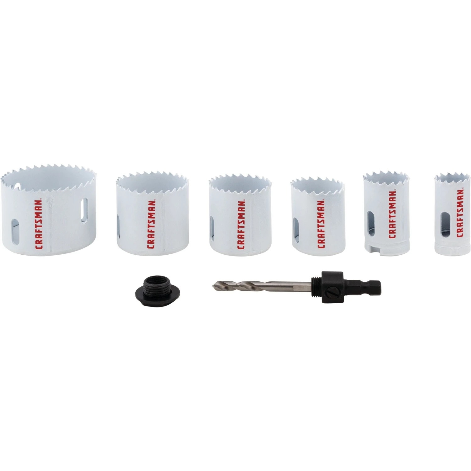 - Includes (1) 1-in Hole Saw; (1) 1-1/4-in Hole Saw; (1) 1-1/2-in Hole Saw; (1) 1-3/4-in Hole Saw; (1) 2-in Hole Saw; (1) 2-1/2-in Hole Saw; (1) Arbor w Pilot; (1) Adapter