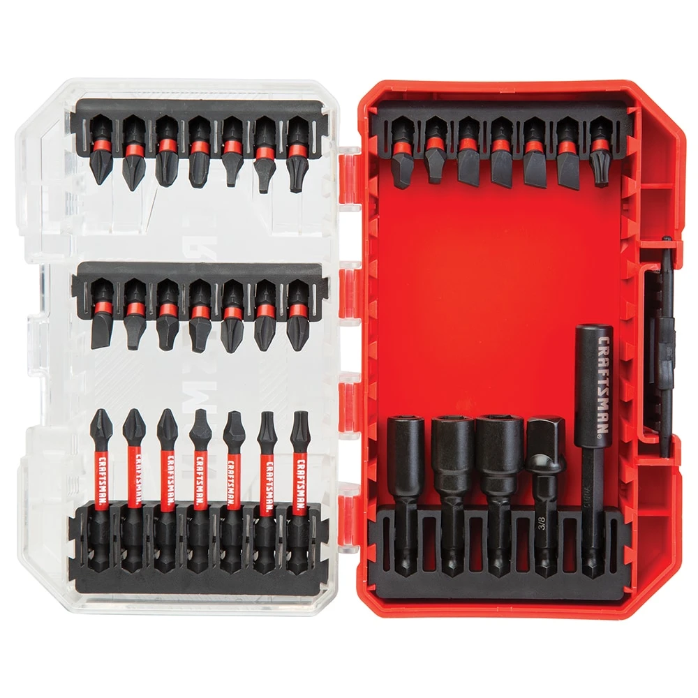 IMPACT RATED™ 33 pc Screwdriving Set is engineered to last longer than standard bits. The optimized torsion zone is designed for Impact Driver use, while each bit tip ensures a precise fit in each screw recess, helping to reduce wear, stripping and cam-out.