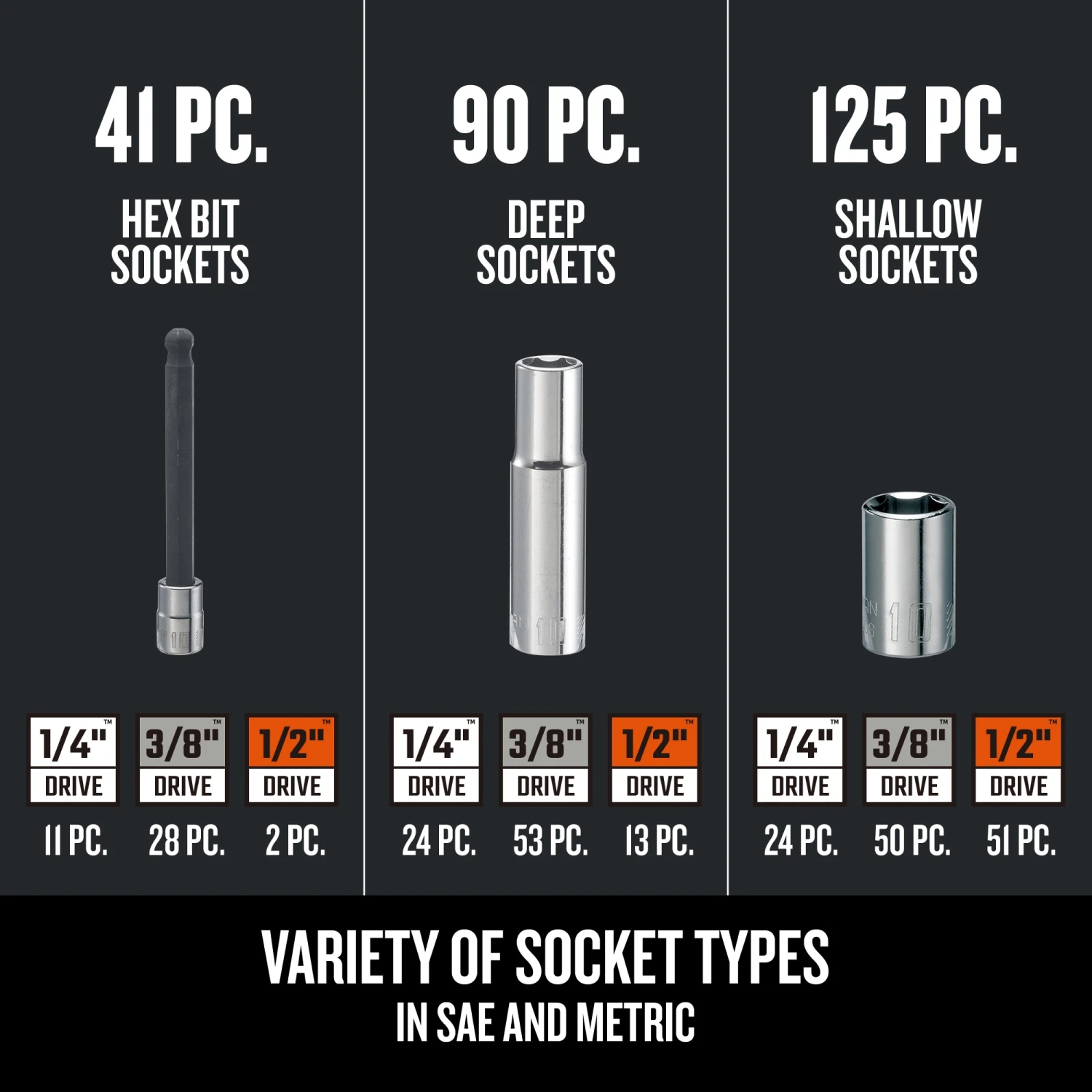 The 299PC Master Socket Set is one of twelve Master Mechanics Tool Sets. This particular set includes: 90 Deep Hand Sockets, 125 Shallow Hand Sockets, 41 Hex Bit Sockets, 32 Torx Bit Sockets, 7 Slotted Bit Sockets, and 4 Phillips Bit Sockets. Backed by a Lifetime Warranty, these tools deliver the quality and durability expected from the Craftsman brand. Continue to build out your tool arsenal today with the 299PC Master Socket Set.