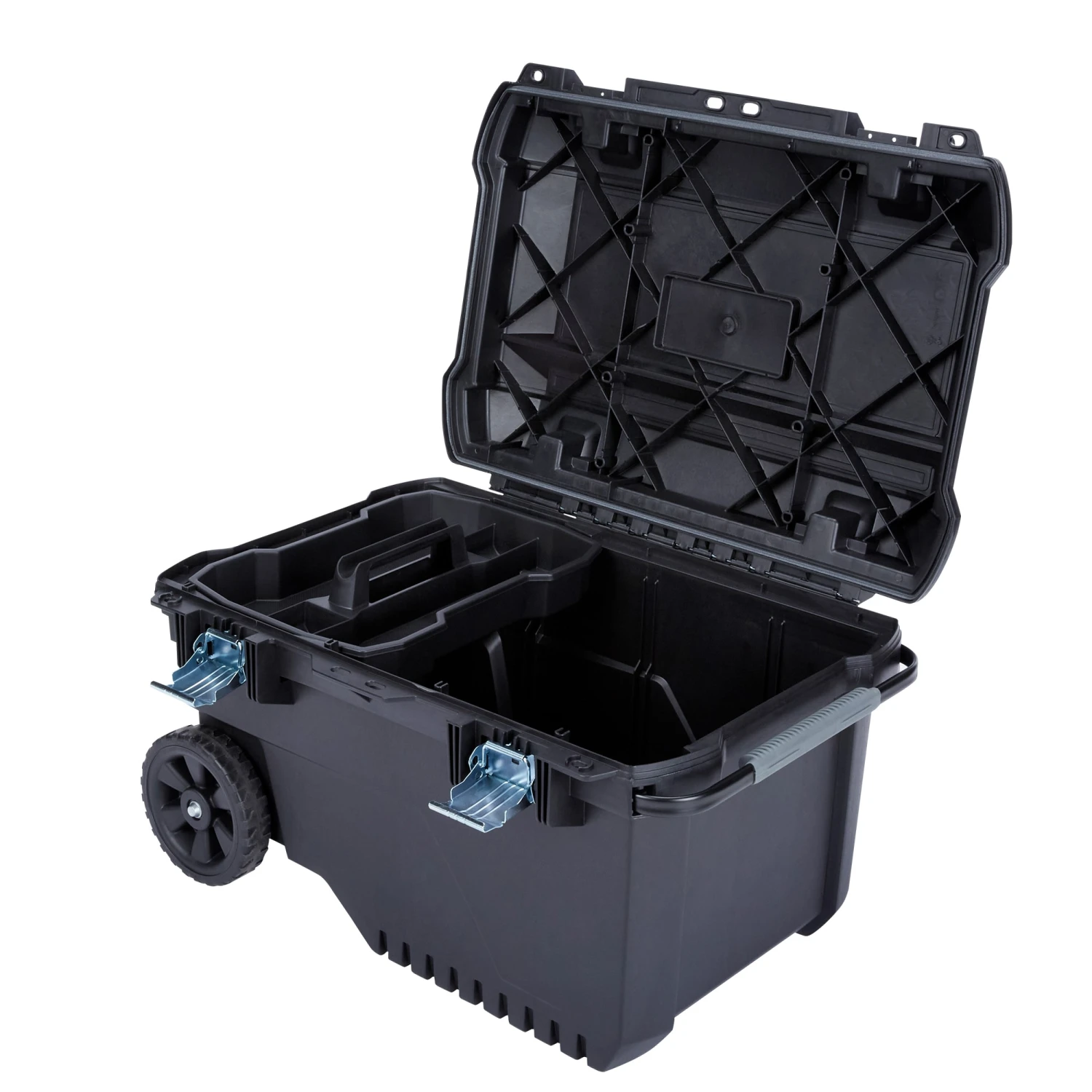 24-Gal Wheeled Lockable Tool Box has metal rail inserts for loading additional equipment on lid top and and professional metal latches.