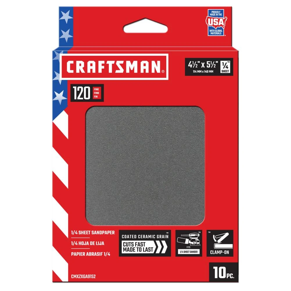 CRAFTSMAN Power Tool Sandpaper Ceramic 1/4 Sheet 120 Grit 10pk 10-Piece Ceramic Alumina 120-Grit Sheet Sandpaper