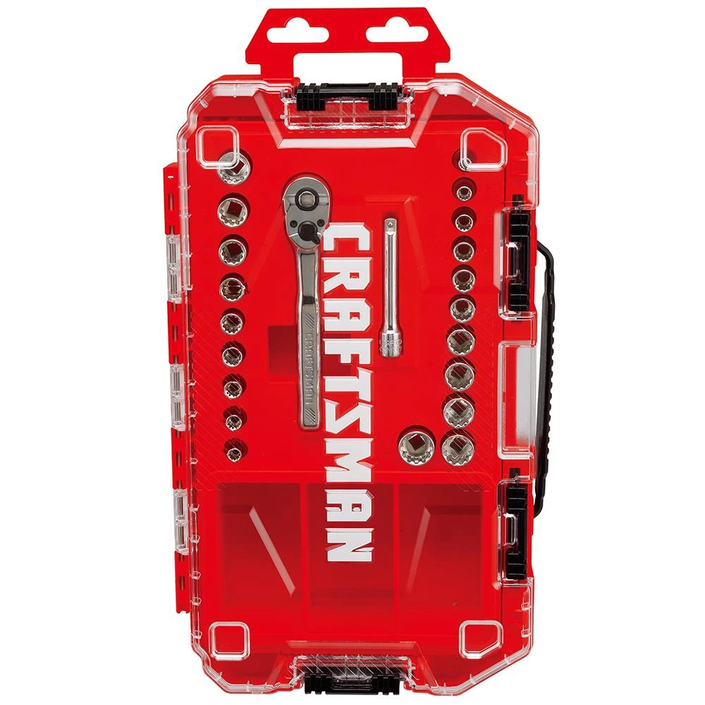 - Includes 1/4-in drive ratchet, 1/4-in drive 3-in extension and (20) 1/4-in sockets