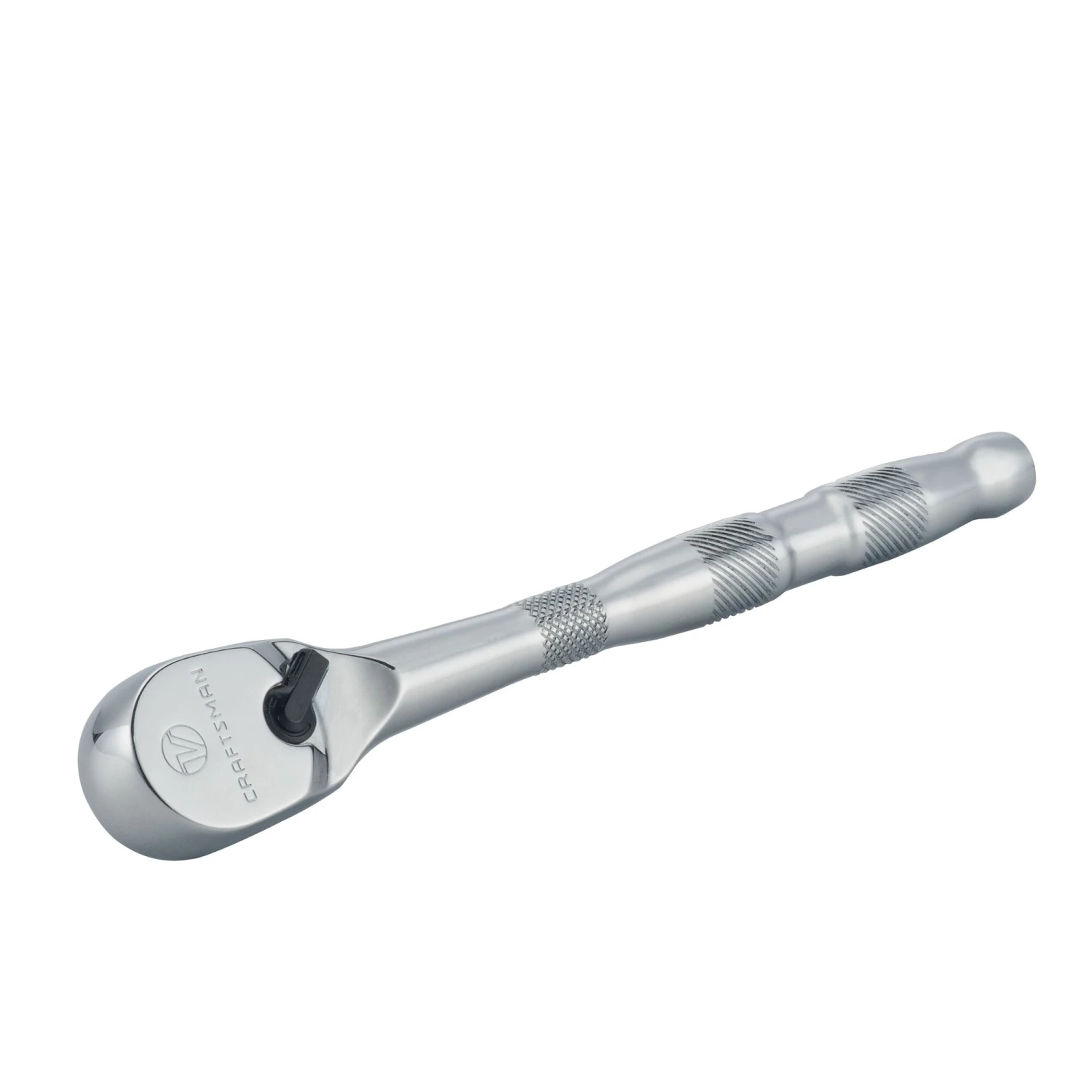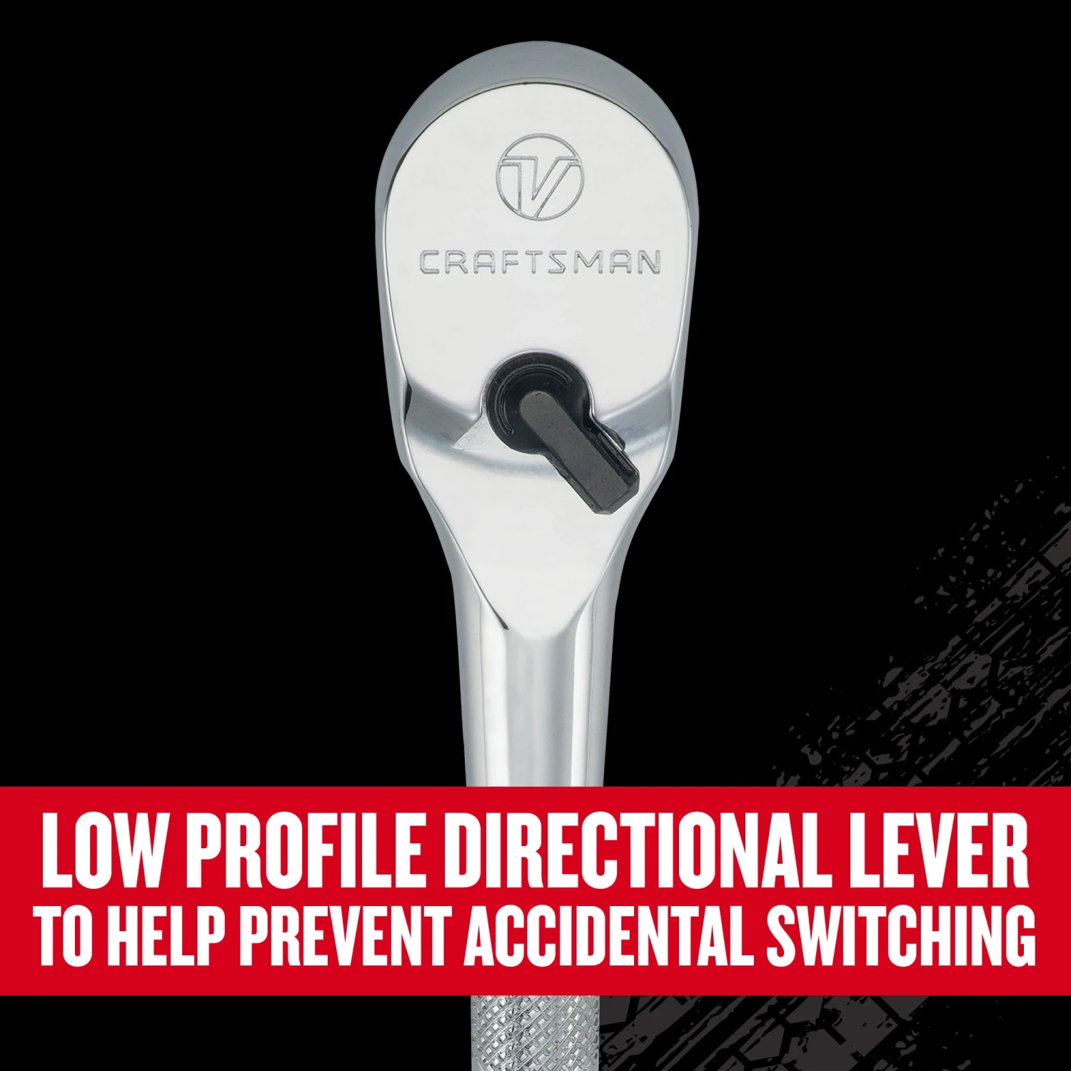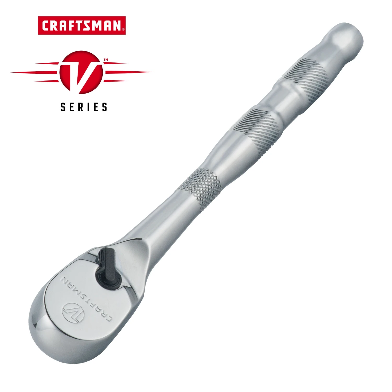 The V-Series 1/2-in Drive Ratchet delivers unprecedented performance to the Craftsman brand. Engineered for professionals, this 1/2-in Drive Ratchet is constructed with a Precision Engineered Gear that provides users with improved tool life and durability. Its 96 tooth design produces a short 3.75 degree arc swing that enables users to access the tightest of spaces without sacrificing strength. Backed by Craftsman’s Lifetime Warranty, this product is designed to deliver the quality and durability expected from the Craftsman brand. If the product fails to perform for any reason, we will replace it. Return damaged product to a stocking Retail Partner or call 1-888-331-4569 for details. No proof of purchase required.