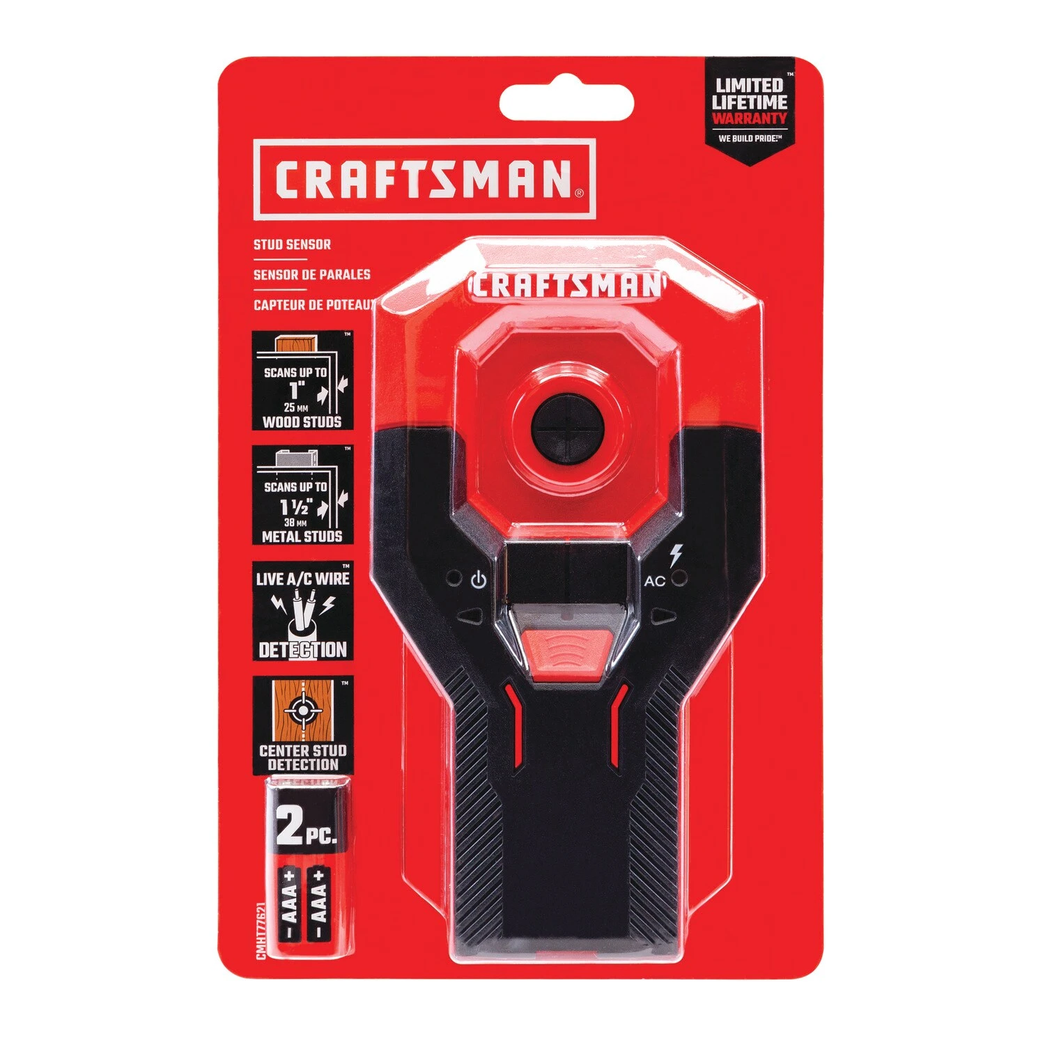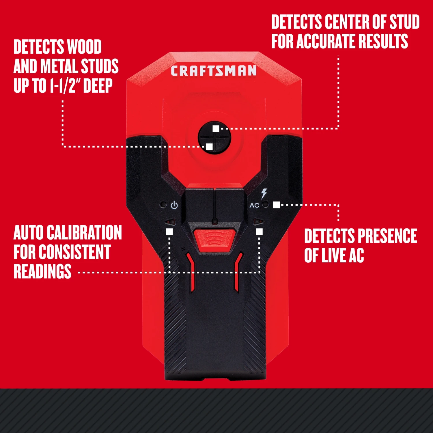 - Detects wood and metal studs up to 1-1/2-in deep