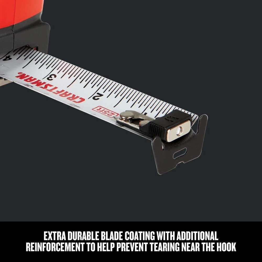 CRAFTSMAN PROREACH tape measures are made in the USA with global materials and are designed to withstand daily jobsite abuse. With 14 feet of blade reach (based on maximum extension of average professional user) and new features designed to enhance the durability of the blade and provide a longer working life, the PROREACH tape measures provide a dependable solution no matter where your work takes you. With a powerful magnetic hook, this tape provides an extra set of hands when working with ferrous metal surfaces commonly found in commercial and industrial construction.