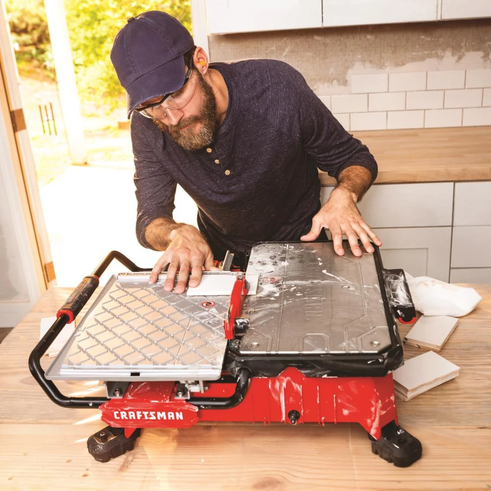 - Includes (1) Tile Saw; (1) CMCB204 V20 4.0Ah Lithium Ion Battery; (1) CMCB104 V20 4.0Ah Battery Charger; (1) Blade Wrench; (1) 7-in Diamond Blade; (1) Miter Square