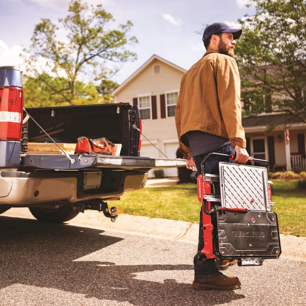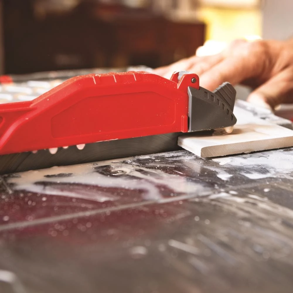 Get your work done from the inside. The V20 Cordless 7-in Compact Wet Tile Saw features water fill-lines inside the tube to help maintain excellent water containment whether the product is being used inside or outside. The innovative sliding cart allows for improved accuracy while allowing the user to have ease of use during tile cutting applications. Store in a compact place, on the job or in the truck, and easy maneuverability with the roll cage handles.