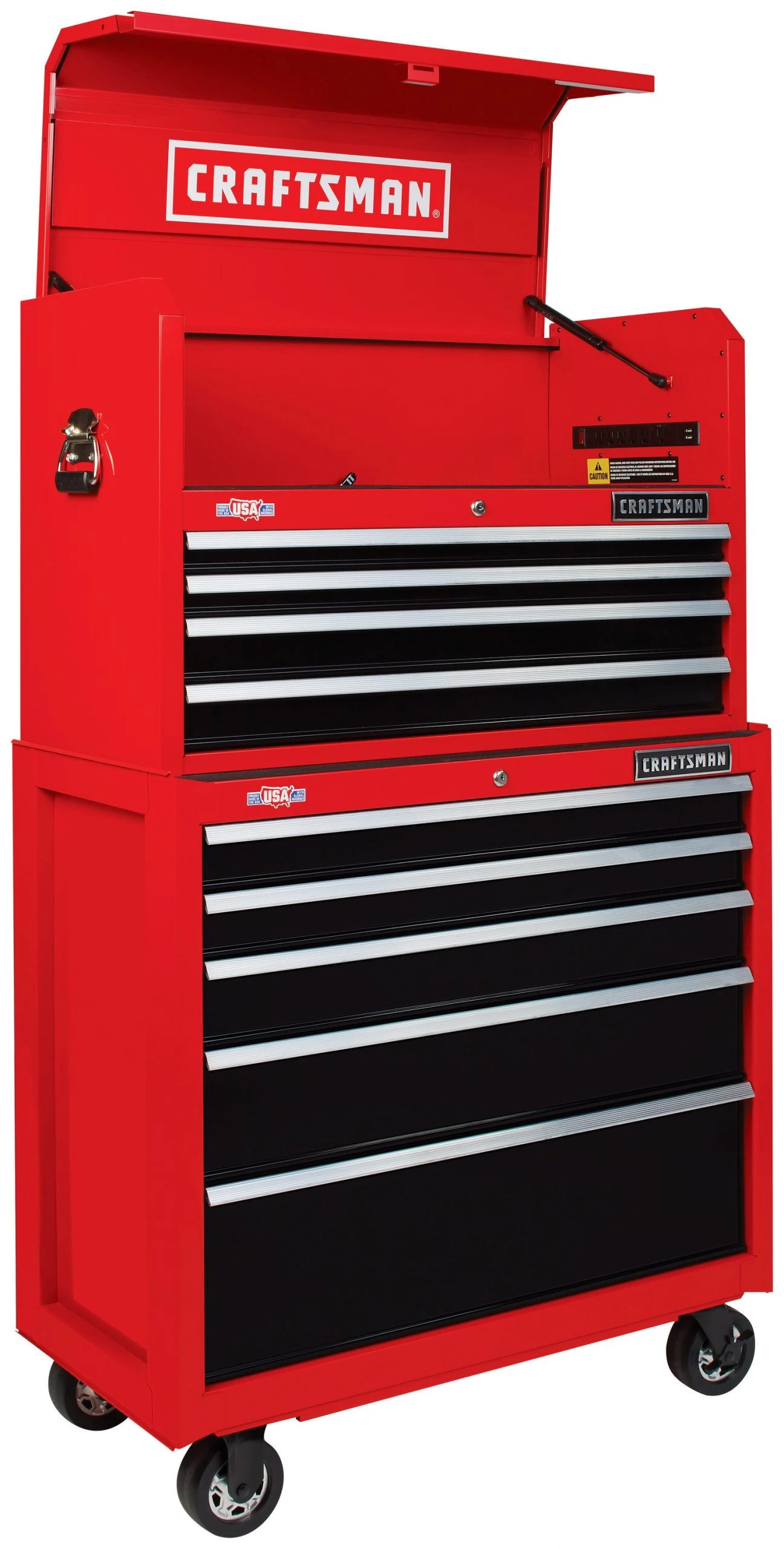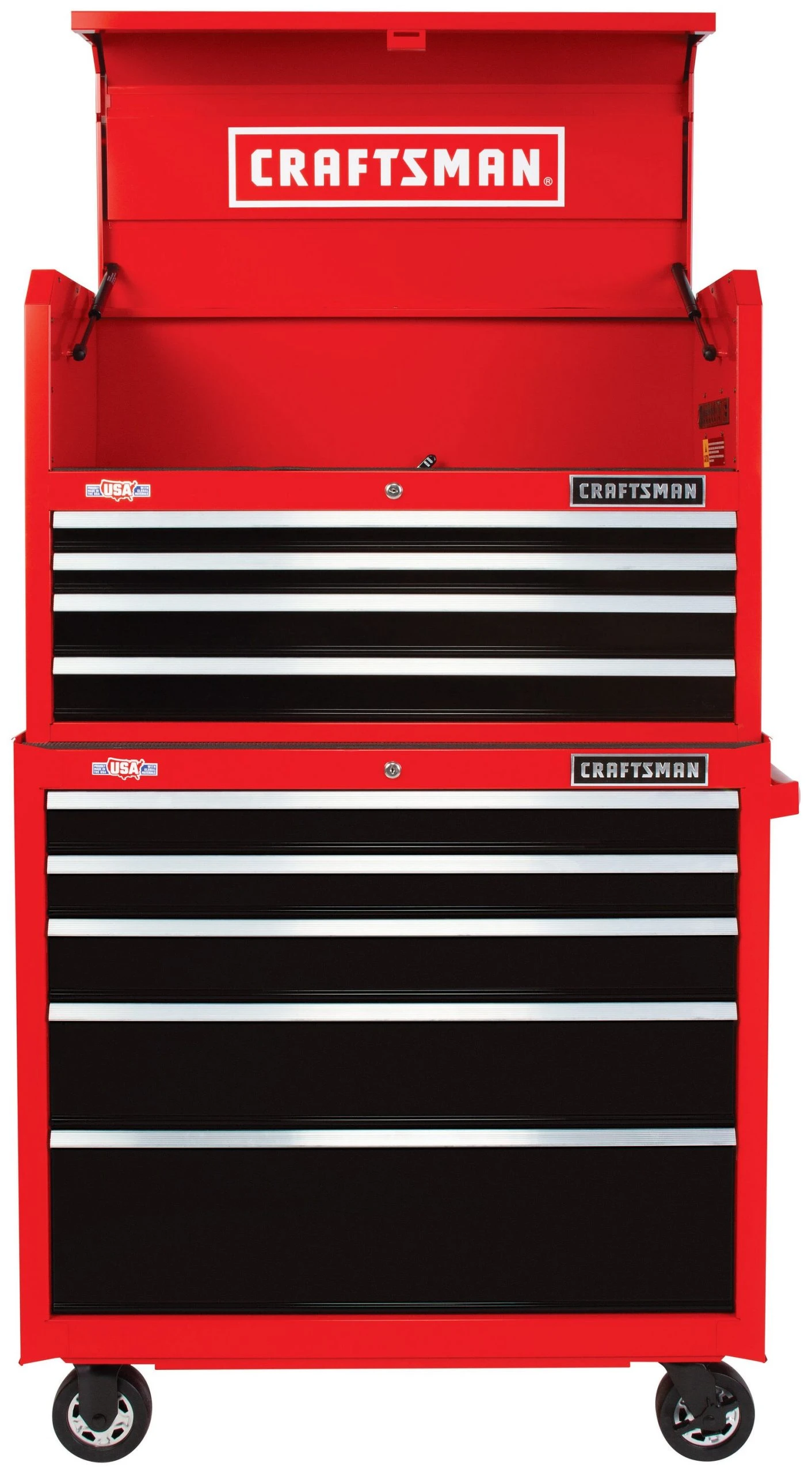 Proudly Made in the USA with Global Materials in Sedalia, Missouri. The 2000 Series CRAFTSMAN® 37-in Wide 4 Drawer Tool Chest combines solid double wall, all steel construction with the convenience of modern technology. The deep open till storage area under the lid can be used to store and charge power tools and electronics.