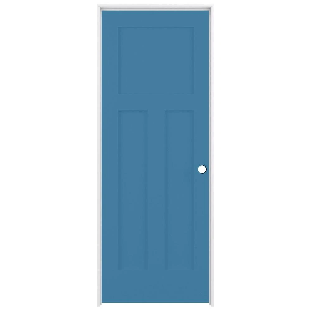 ReliaBilt Prehung Interior Doors Shaker 24-in x 80-in Blue Heron 3-Panel Craftsman Solid Core Prefinished Pine MDF Left Hand Inswing Single Prehung Interior Door