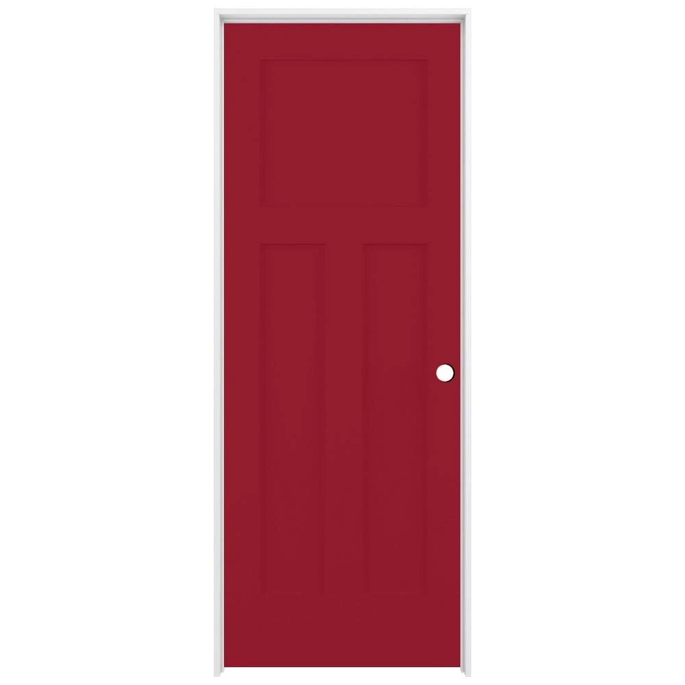 ReliaBilt Prehung Interior Doors Shaker 28-in x 80-in Barn Red 3-Panel Craftsman Solid Core Prefinished Pine MDF Right Hand Inswing Single Prehung Interior Door